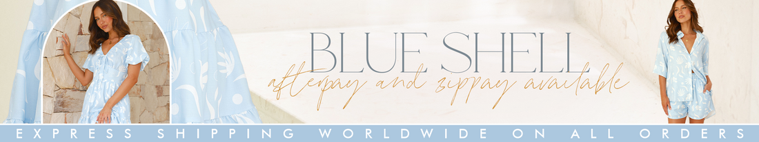 Women wearing light blue printed set from Billy J